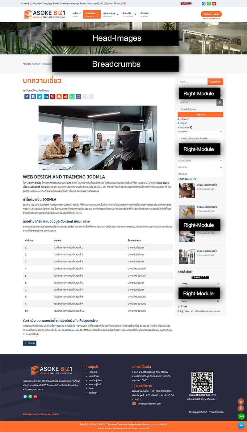ข้อมูลแสดงตำแหน่ง Positions ต่างๆของโมดูลในเทมเพลต