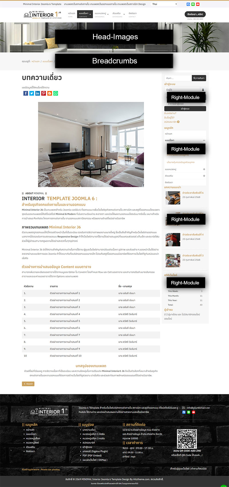 คู่มือการใช้งานในการกำหนดการแสดงผลของตำแหน่ง Module ต่างๆ ผ่านทาง Positions ต่างๆ ที่ได้กำหนดไว้ใน Template โปรดศึกษาและทำความเข้าใจในการกำหนดการแสดงผล เพื่อการปรับเปลี่ยนหรือเพิ่มเติม Module ตามที่คุณต้องการได้ในอนาคต