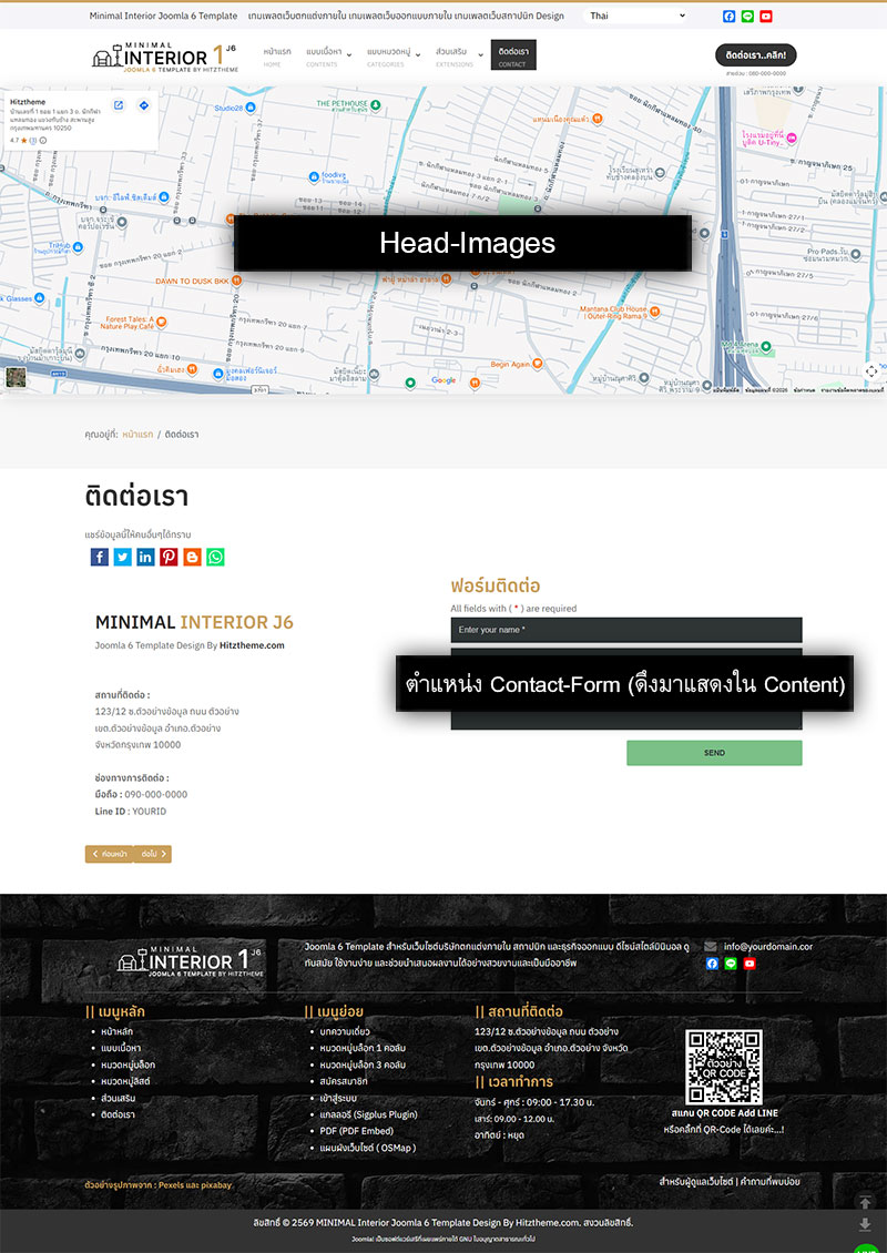 * เป็นการดึงมาแสดงตามตำแหน่งโดยจะเป็นโมดูลลอย อยู่ที่ตำแหน่ง contact-form แล้วดึงมาแสดงใน Content ( แบบ Page Builder CK ) หน้าติดต่อเรา