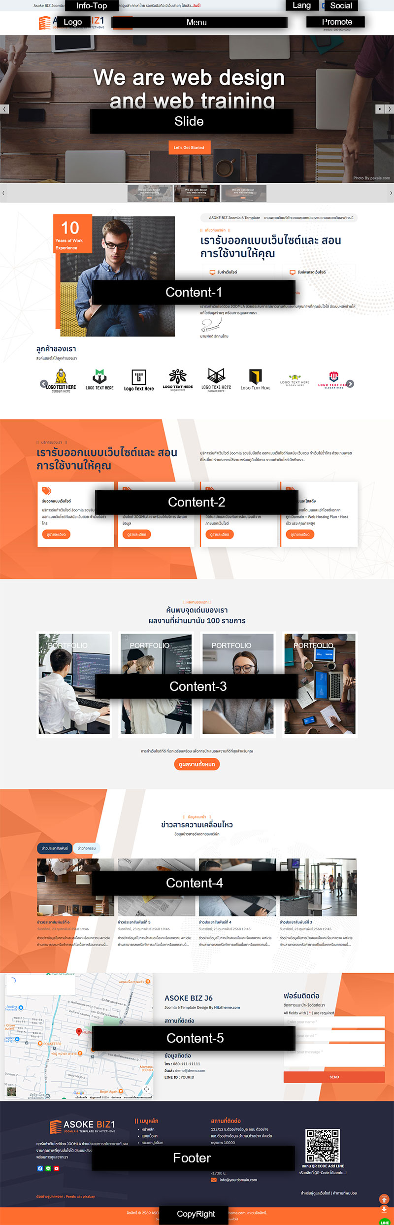 ข้อมูลแสดงตำแหน่ง Positions ต่างๆของโมดูลในเทมเพลต