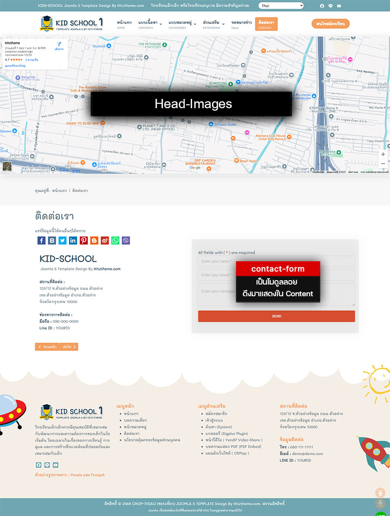 * เป็นการดึงมาแสดงตามตำแหน่งโดยจะเป็นโมดูลลอย อยู่ที่ตำแหน่ง contact-form แล้วดึงมาแสดงใน Content ( แบบ Page Builder CK ) หน้าติดต่อเรา